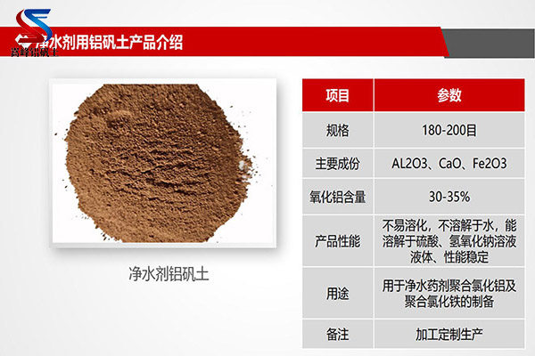 凈水劑鋁礬土作為凈水劑聚合氯化鋁的原材料是輕燒鋁礬土,又稱輕燒粉;是鋁礬土經(jīng)過加工生產(chǎn)出來的礦粉材料,主要成分是氧化鋁,系含有雜質(zhì)的水合氧化鋁,是一種土狀礦物。白色或灰白色,因含鐵而呈褐黃或淺紅色,密度3.9~4g/cm3,硬度1~3,不透明,質(zhì)脆。極難熔化,不溶于水,能溶于硫酸、氫氧化鈉溶液